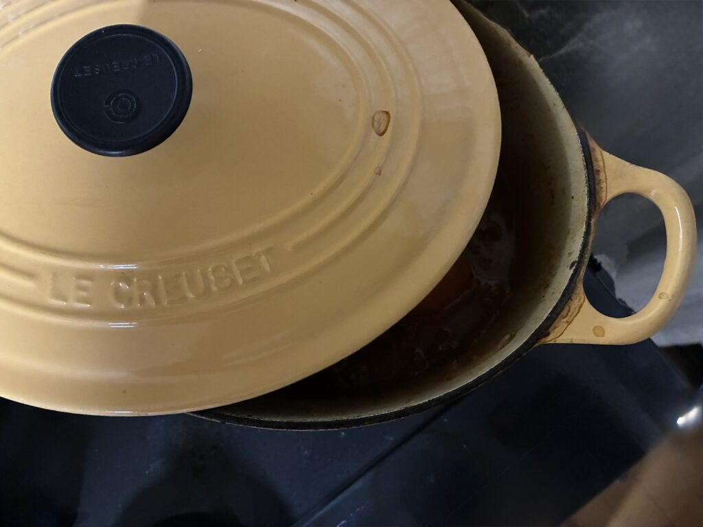鍋で牛肉の表面を焼いて一旦取り出し、それぞれの野菜を炒めてから肉を戻し、ギネスビールと水、コンソメを入れて3時間ほど煮込みました。