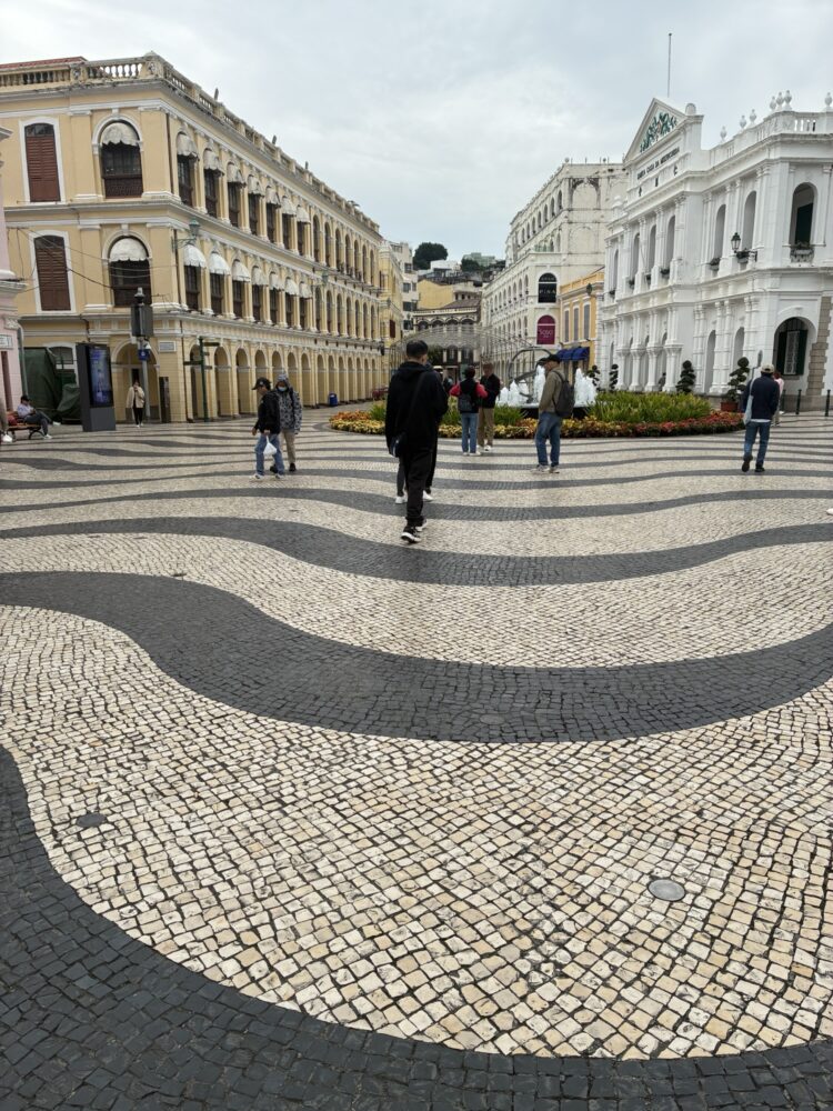 マカオに到着後、入国審査を終え、バスでセナド広場へ移動。