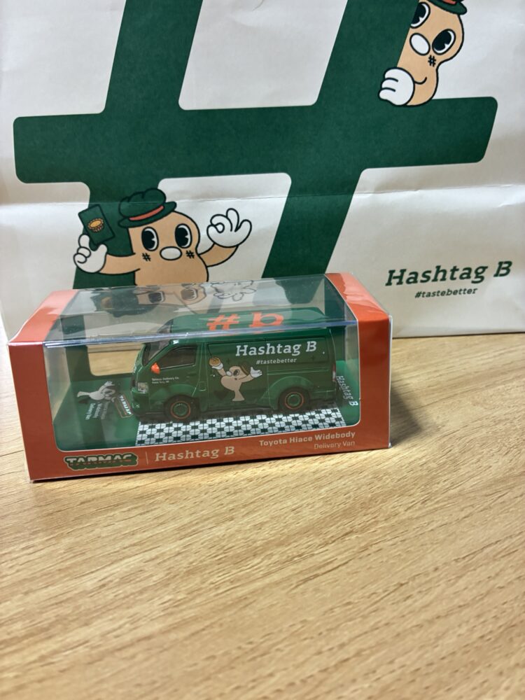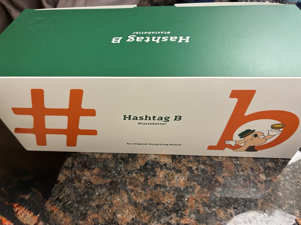 香港へ入国後、地下鉄で尖沙咀に向かい、食べてみたかった「Hashtag B(ハッシュタグB)」というエッグタルト屋さんで限定のオリジナルミニカー付きのエッグタルトをテイクアウト。