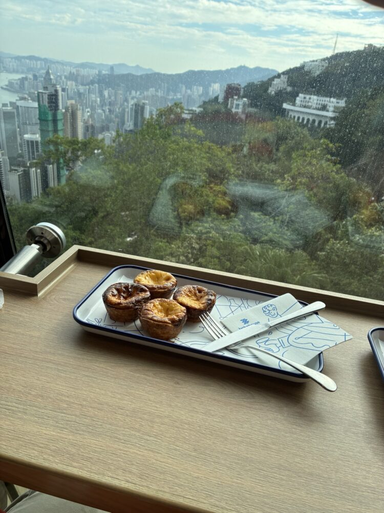 香港の絶景を見てお土産屋さんを覗いていたら、これまたエッグタルトで有名な「Bakehouse(ベイクハウス)」のカフェを偶然発見。開店30分前に並んで窓際の席を案内してくれました。