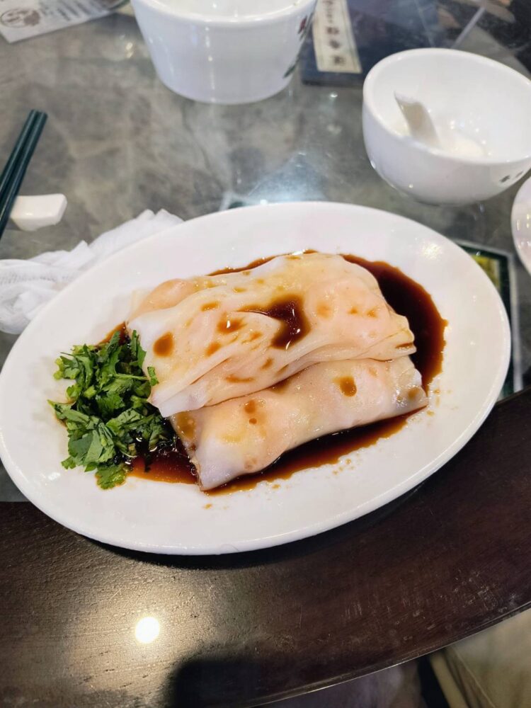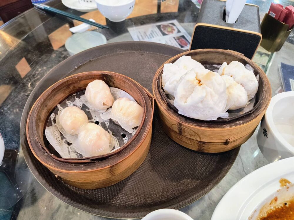 昼食は飲茶が食べたい!との事で、スターフェリーで九龍側に戻り、という飲茶のお店へ。ワゴンで運ばれているチョンファンを選んだり、蒸し物コーナーに直接行ってチャーシュー饅頭や焼売を選んだりと大満足。